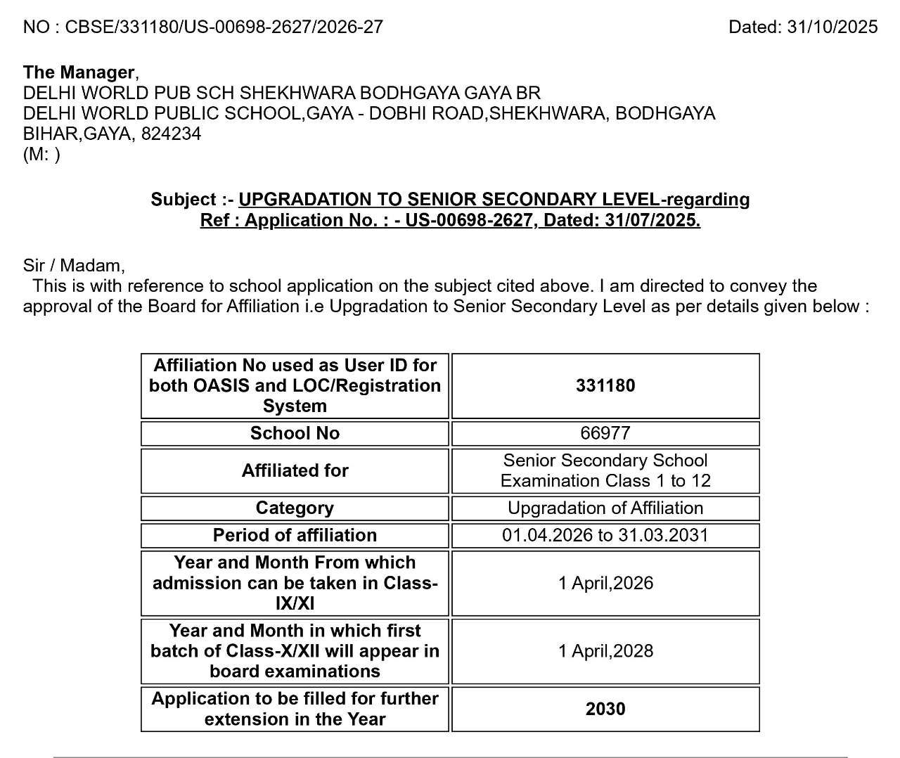 | 1 | NAME OF SCHOOL | DELHI WORLD PUBLIC SCHOOL BODHGAYA |